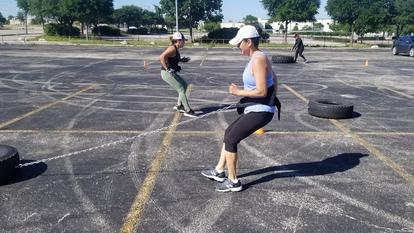 You do not need to bring any equipment to boot camp but it is recommended that you wear comfortable workout shoes preferably "cross trainers," comfortable workout attire with long hair tied up. (due to the vigorous nature of boot camp it is recommended sport bras be worn 2 sizes smaller for extra support). Bring a water bottle and towel from home. First time boot campers, please print and sign the Release/Waiver Form.